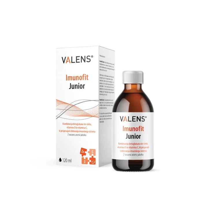 Imunofit Junior je prehransko dopolnilo v tekoči obliki za otroke in mladostnike, ki vsebuje edinstveno kombinacijo naravnega betaglukana ter vitamina C, vitamina D in cinka. Izdelek odlikuje visoka koncentracija betaglukana iz kvasovk (100 mg), za katero je bila dokazana povečana biološka aktivnost. Vitamin C ima vlogo pri delovanju imunskega sistema ter pri obrambi pred prostimi radikali, reaktivnimi molekulami, ki se sproščajo ob odzivu imunskega sistema na vstop tujkov. Vitamin D prispeva k ohranjanju zdravih kosti, njegovo jemanje pa je smiselno predvsem jeseni in pozimi, ko je sončnih žarkov manj kot ponavadi. Cink prispeva tudi h kognitivnim oziroma možganskim funkcijam. Naravna aroma jabolka daje izdelku zelo prijeten okus, zato ga otroci z veseljem uživajo.